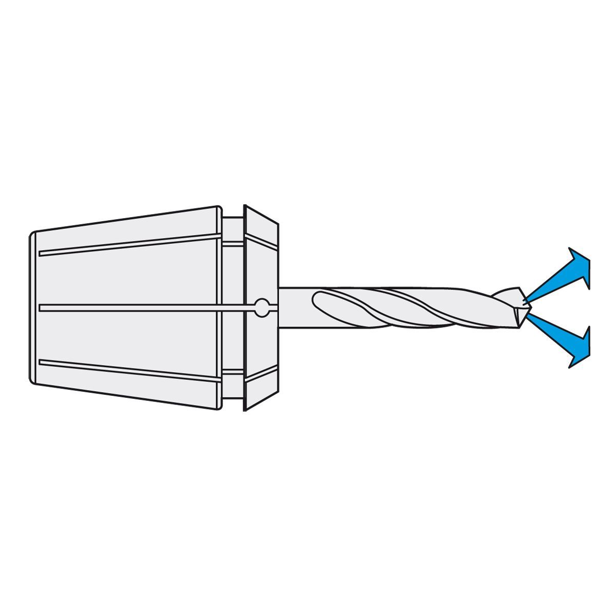 Only nominal size d can be clamped (applicable up to 120 bar). In order to achieve an optimum sealing the tool must be clamped on the complete length of the ground drill of the collet.
