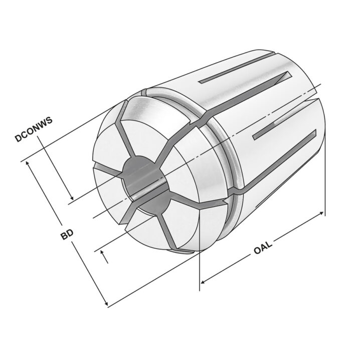 Categories: 430 E (ER 25) - Precision - 3 µm, Collets, Collets system ER - Precision - 3 µm, Collets with seals for high pressure cooling until 100 bar - 3 µm